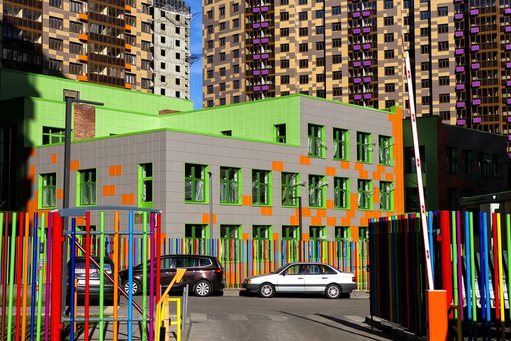 Облицовочный материал: керамогранит (видимое крепление)