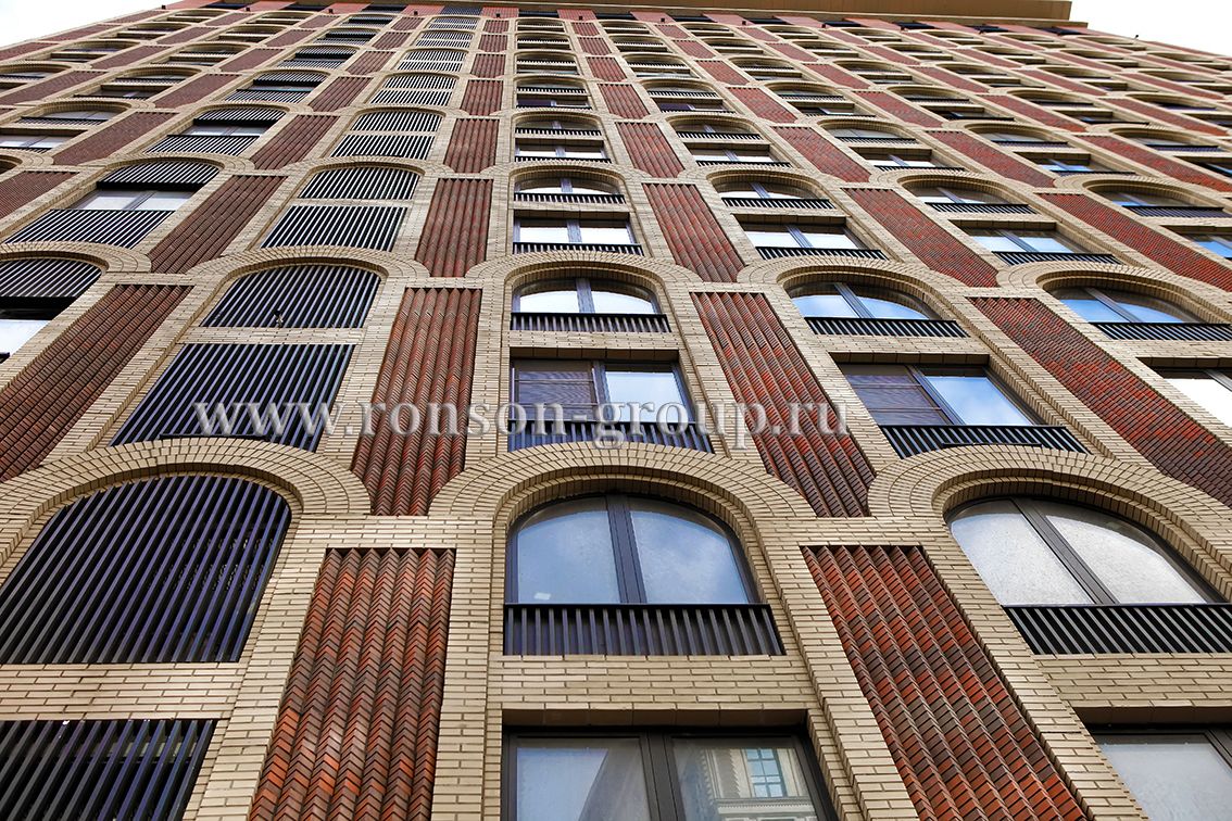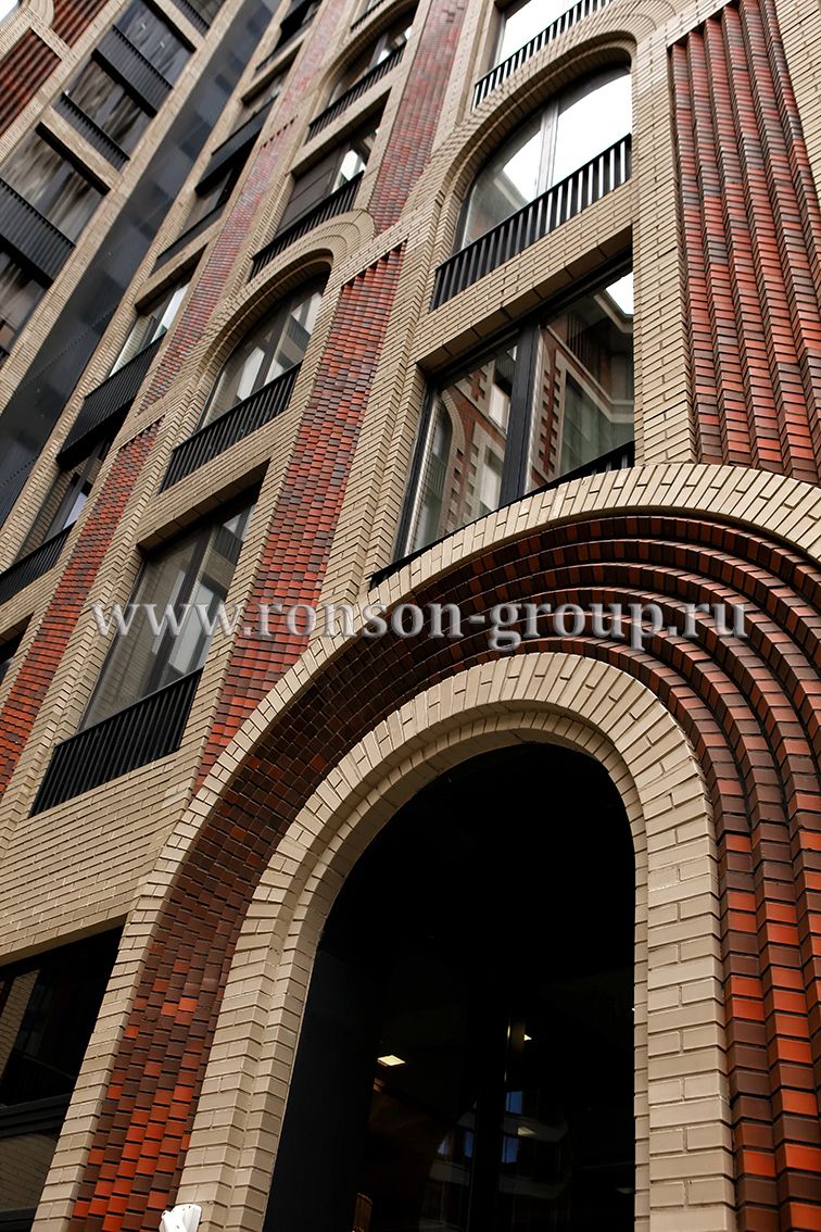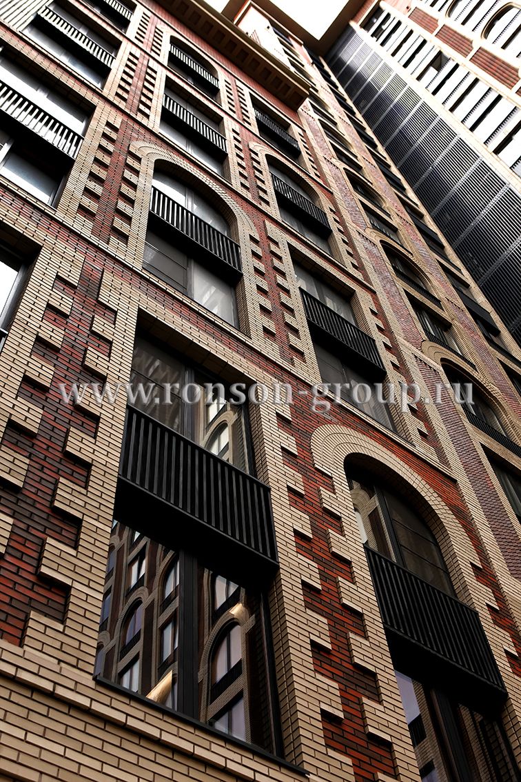 Облицовочный материал: натуральный камень с рустами, кирпич