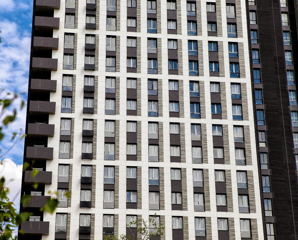 Облицовочный материал: фиброцементные плиты, керамогранит (видимое крепление), декоративный камень White Hills