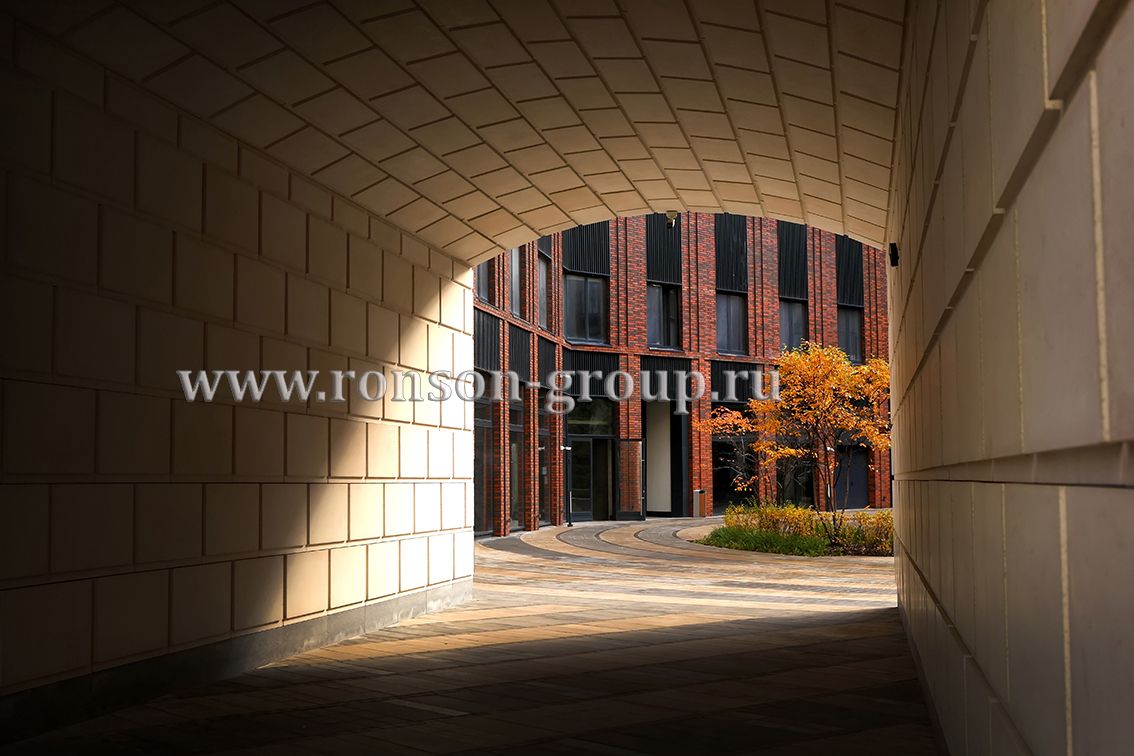 Облицовочный материал: натуральный камень с рустами, кирпич