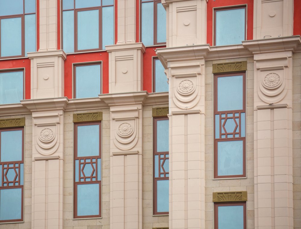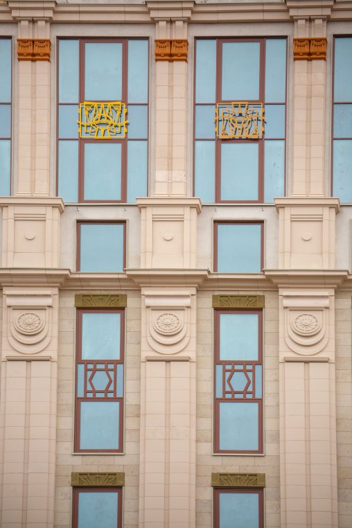 Облицовочный материал: натуральный камень, декоративные элементы из стеклофибробетона, Аквапанель