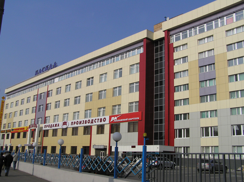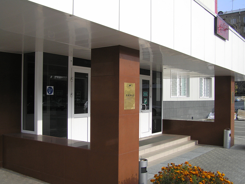 Облицовочный материал: алюмокомпозит, керамогранит (видимое крепление)