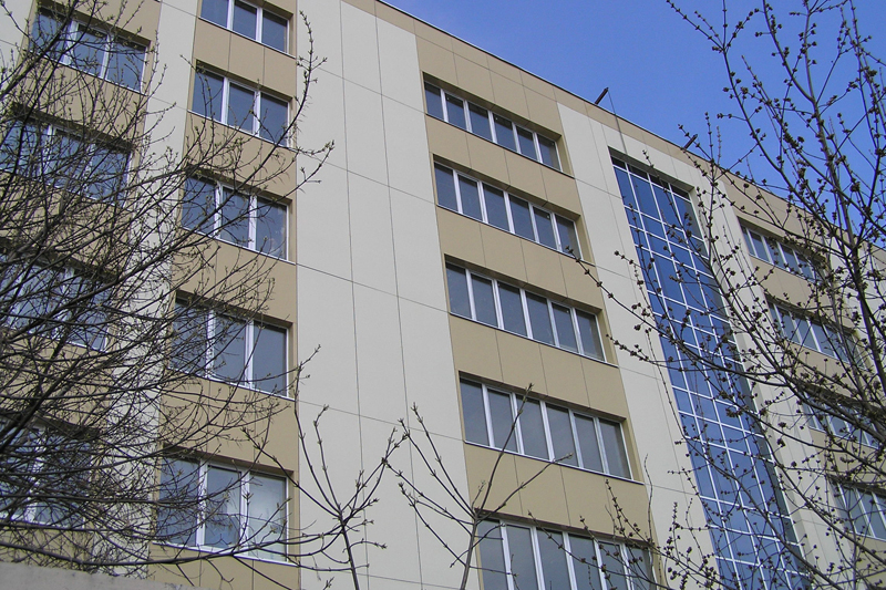 Облицовочный материал: Кассеты из композитных материалов, керамогранит (видимое крепление) и витражи