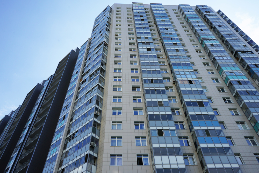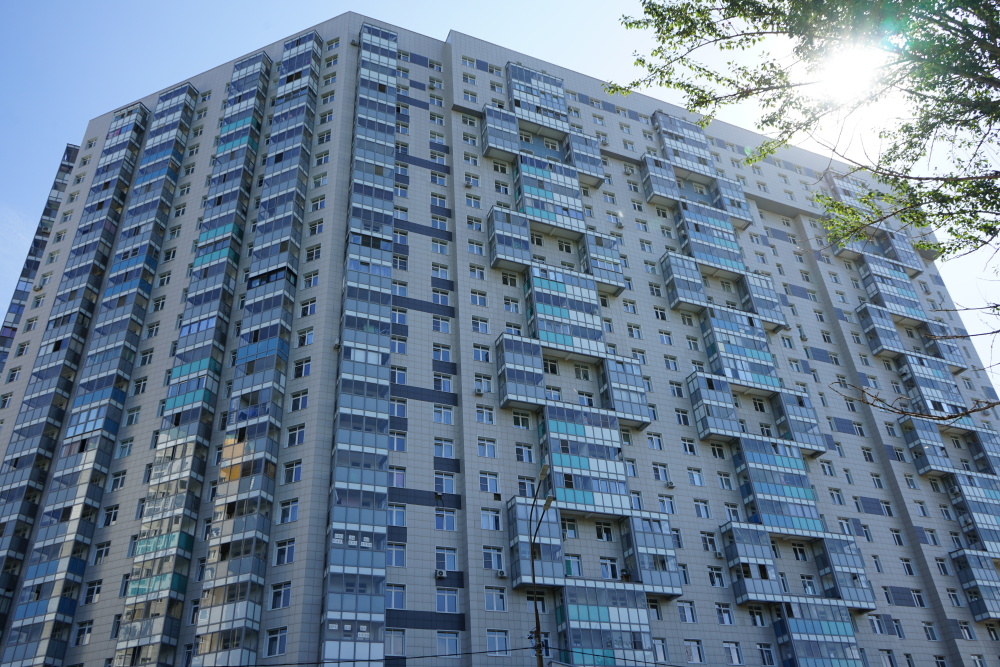 Облицовочный материал: керамогранит (видимое крепление), витражи