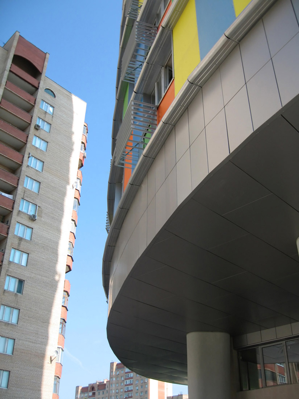 Облицовочный материал: фиброцементные плиты, мокрый фасад, витражи