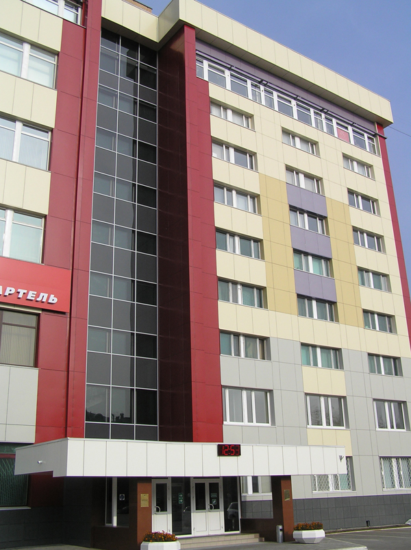 Облицовочный материал: кассеты из алюмокомпозита, керамогранит