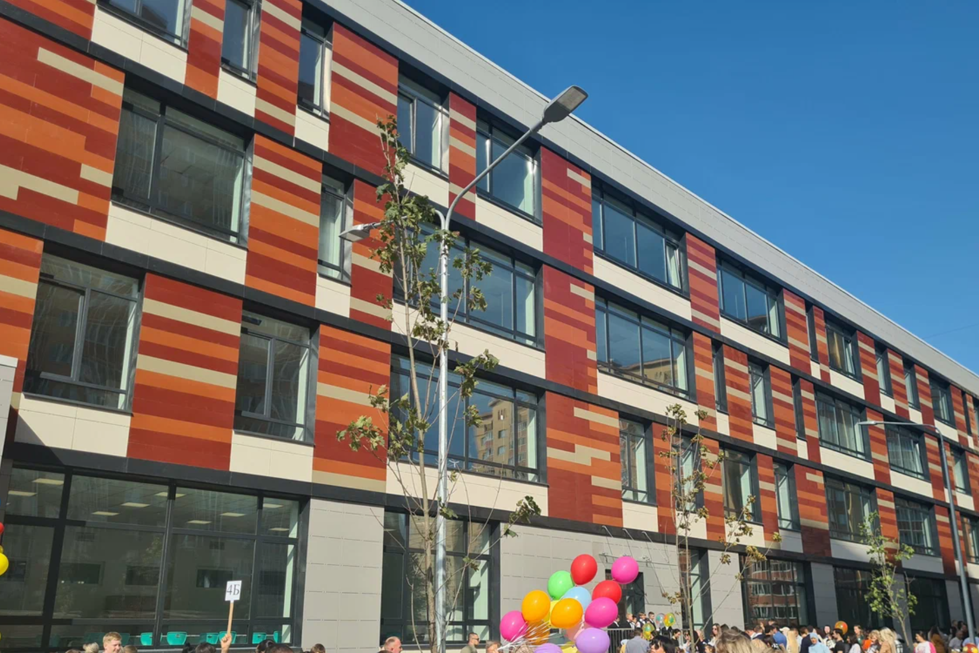 Облицовочный материал: металлокассеты, крупноформатный керамогранит (видимое крепление)