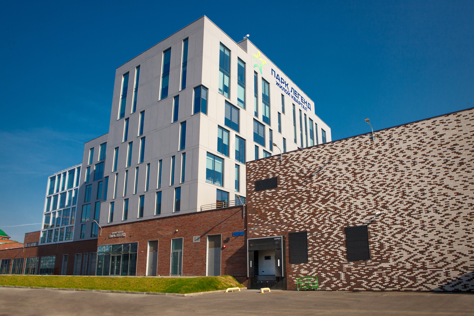 Облицовочный материал: HPL-панели, бетонная плитка White Hills