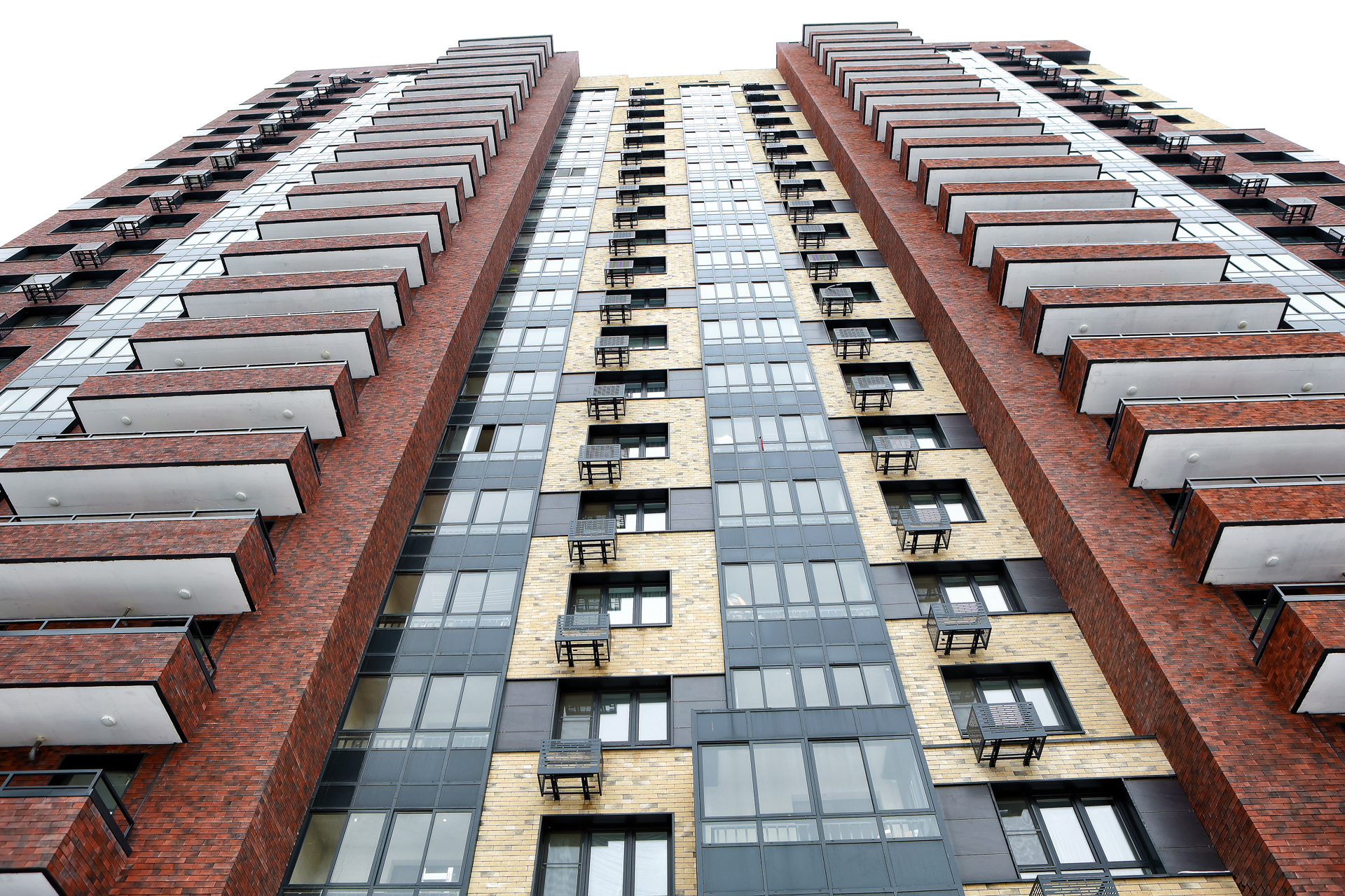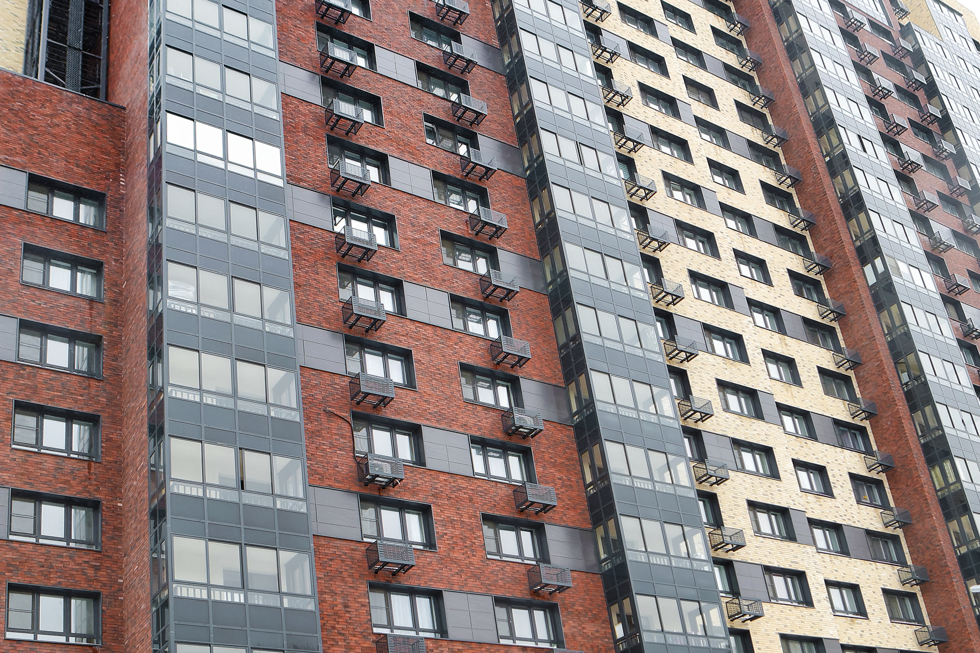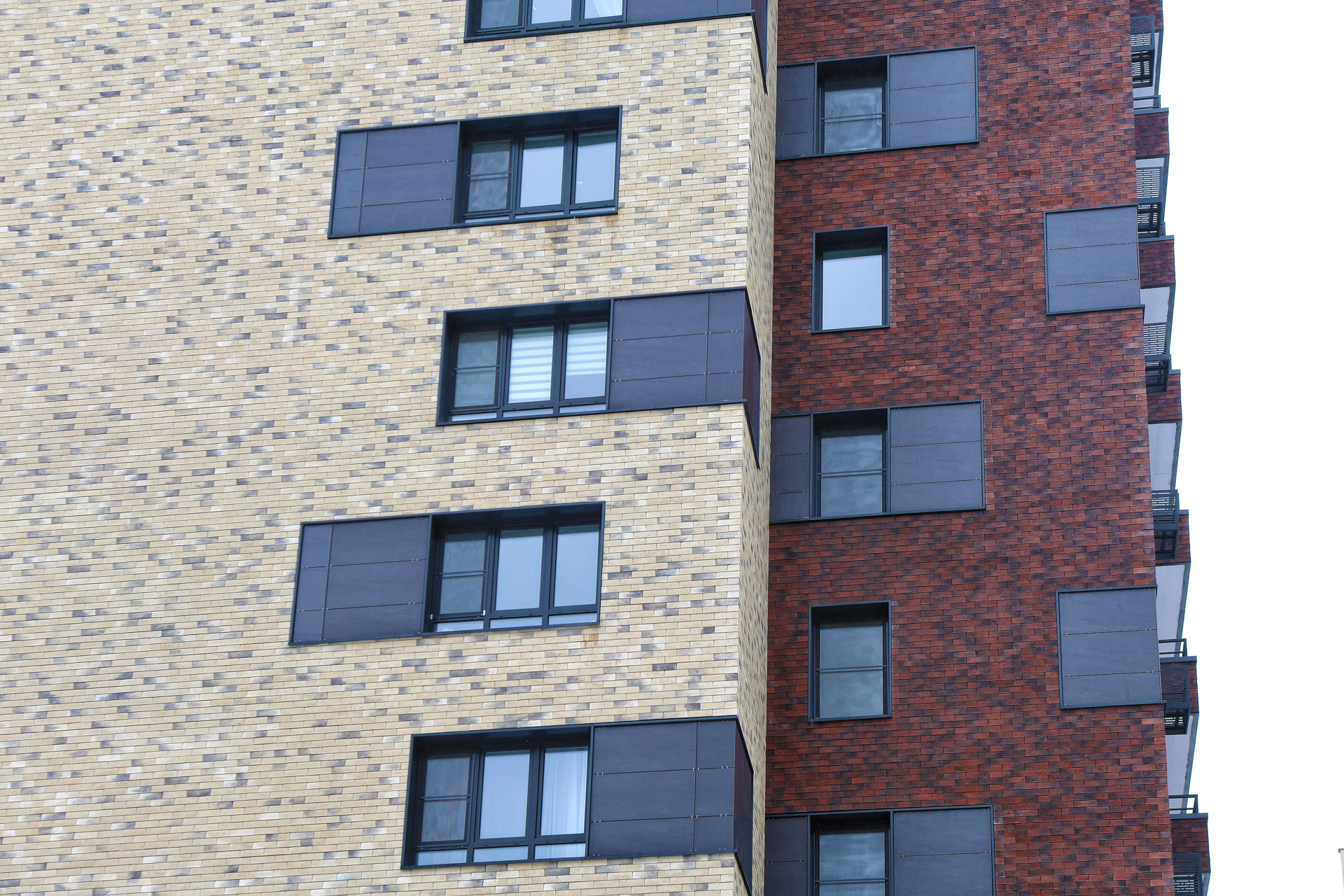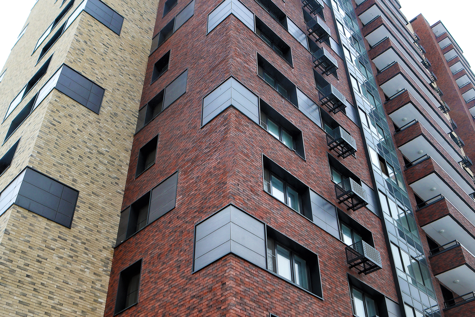 Облицовочный материал: керамогранит (видимое крепление), бетоннная плитка White Hills, кирпич RECKE-РОНСОН