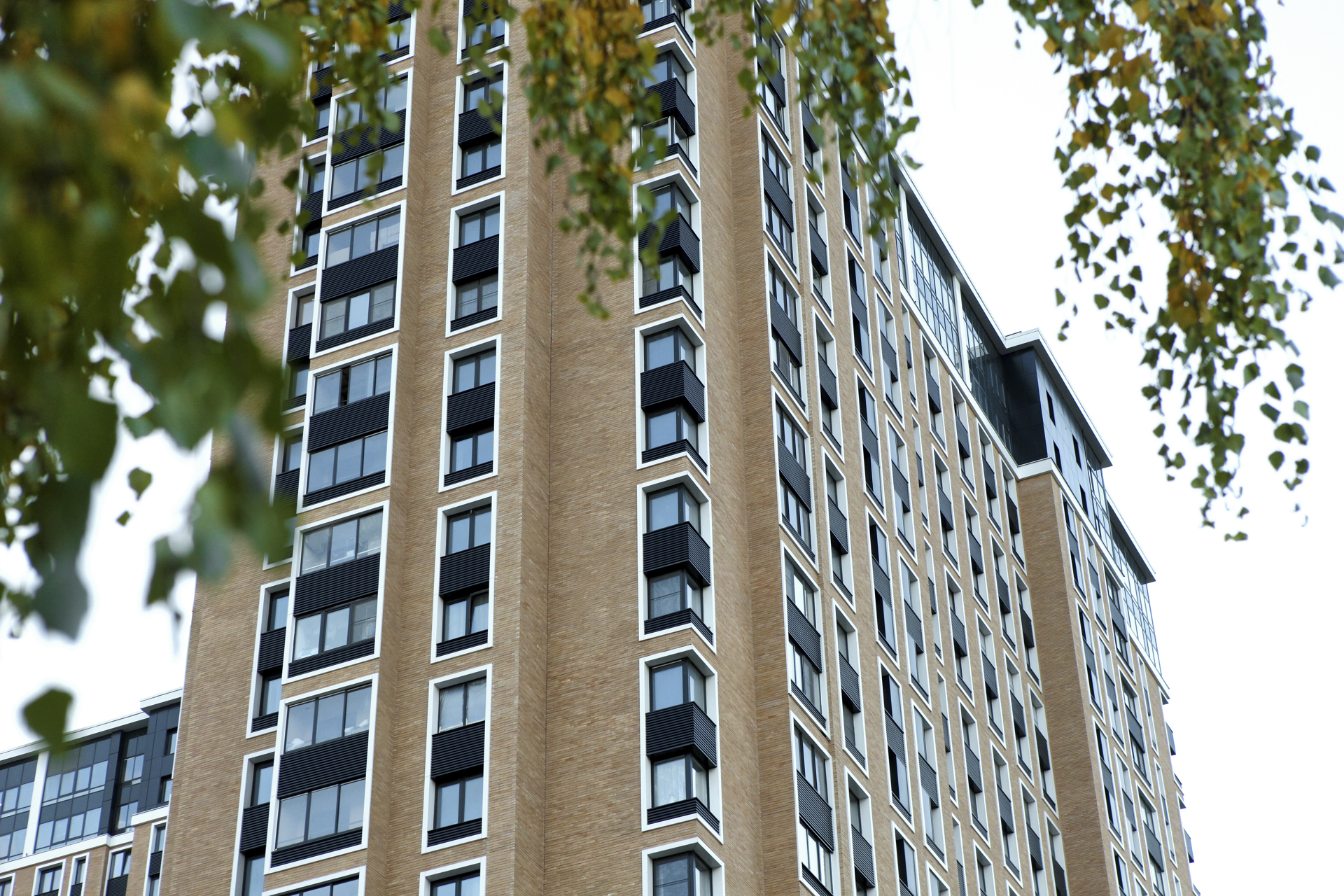 Облицовочный материал: стальные ламели, кассеты из алюмокомпозита, бетонная плитка White Hills