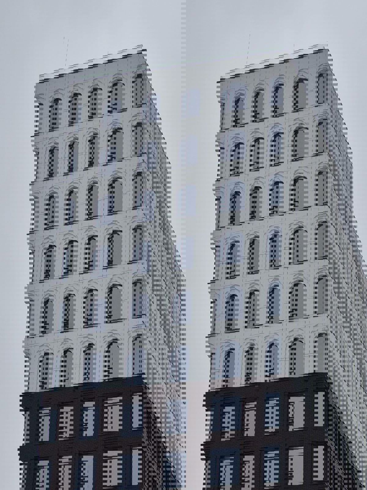Архитектура объекта — сложная, многоуровневая, с арочными окнами, перспективными обрамлениями и элементами из композитных панелей на верхних этажах. Вся эта сложность была успешно реализована на нашей подсистеме.