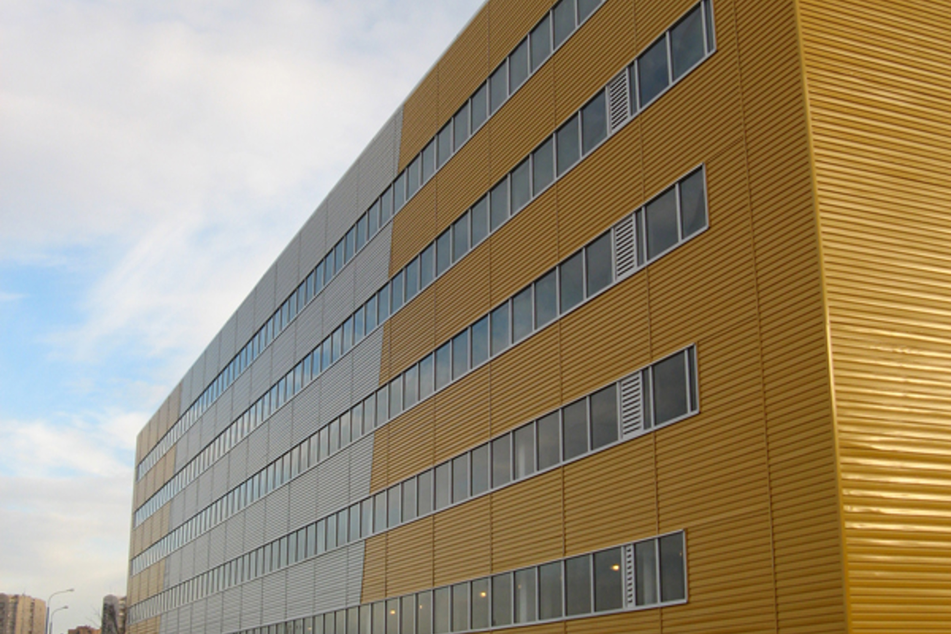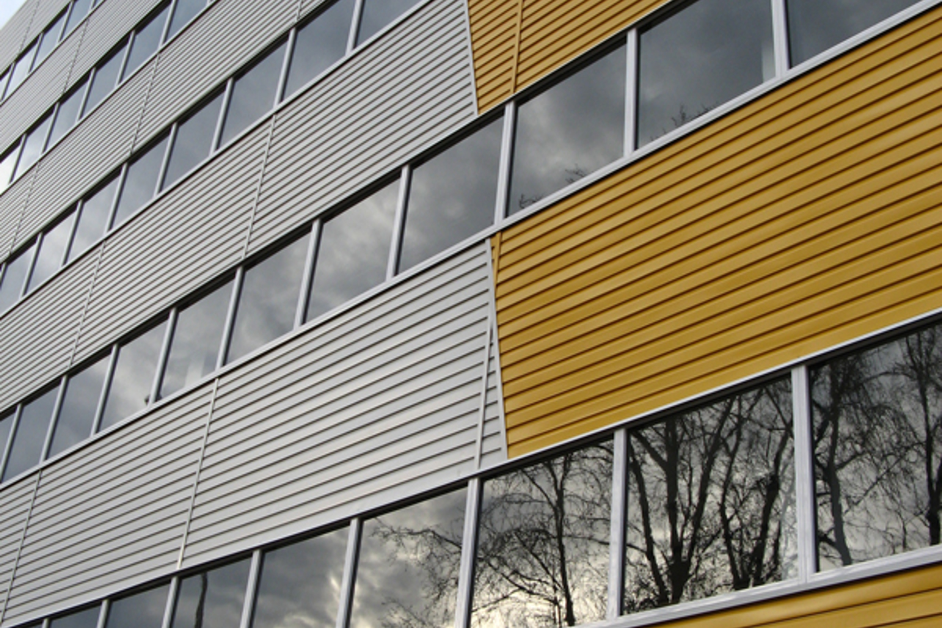 Облицовочный материал: металлосайдинг, ленточное остекление