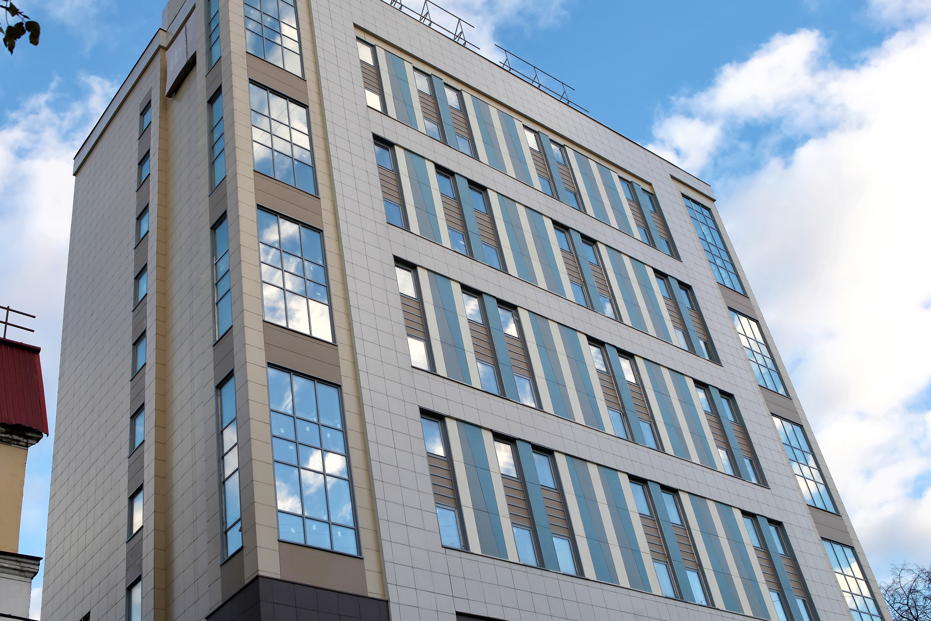 Облицовочный материал: керамогранит (видимое крепление), керамогранит (скрытое крепление)