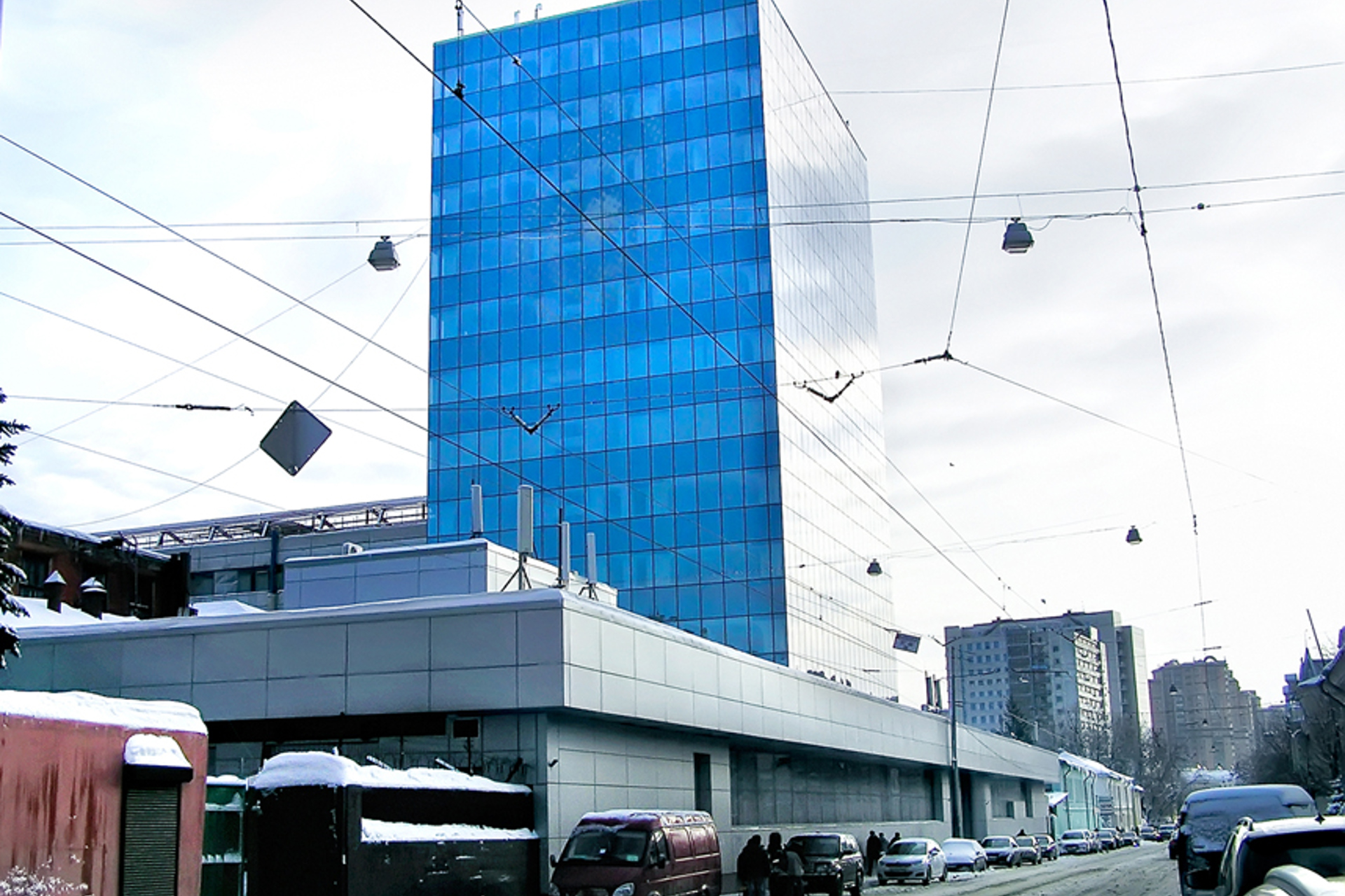 Облицовочный материал: кассеты из алюмокомпозита, светопрозрачные конструкции