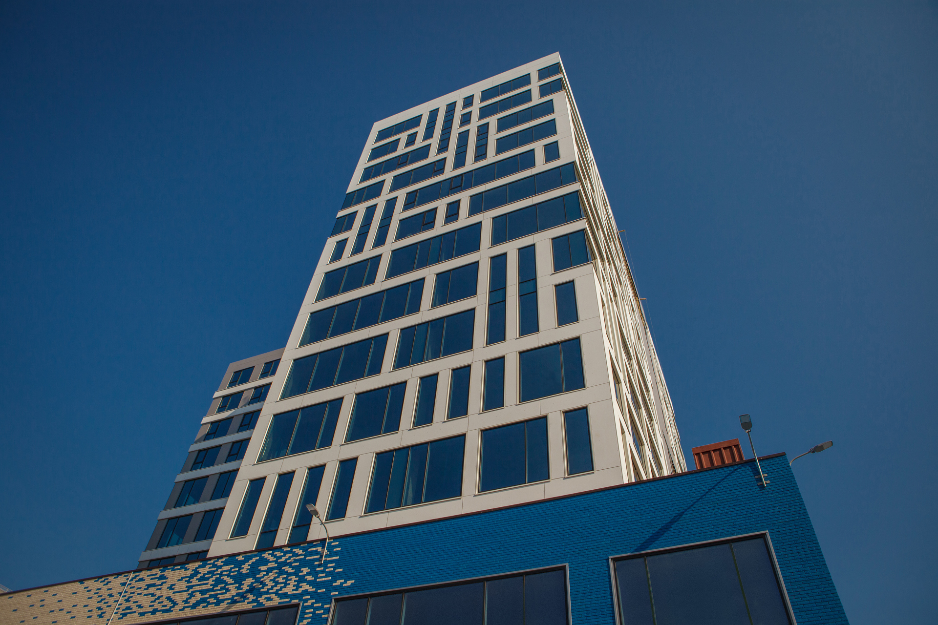 Облицовочный материал: HPL-панели, бетонная плитка White Hills