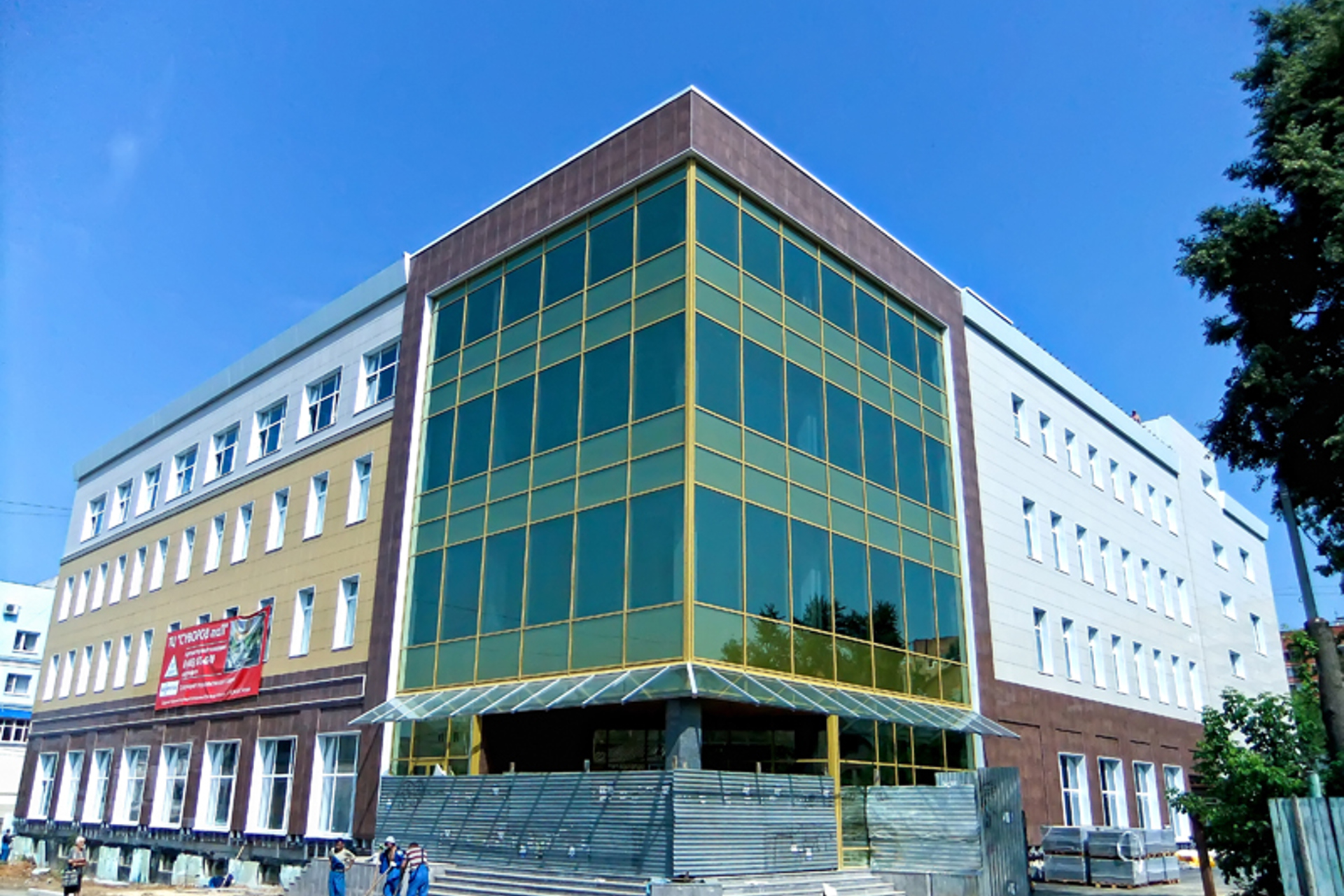 Облицовочный материал: кассеты из алюмокомпозита, металлокассеты, керамогранит (видимое крепление)