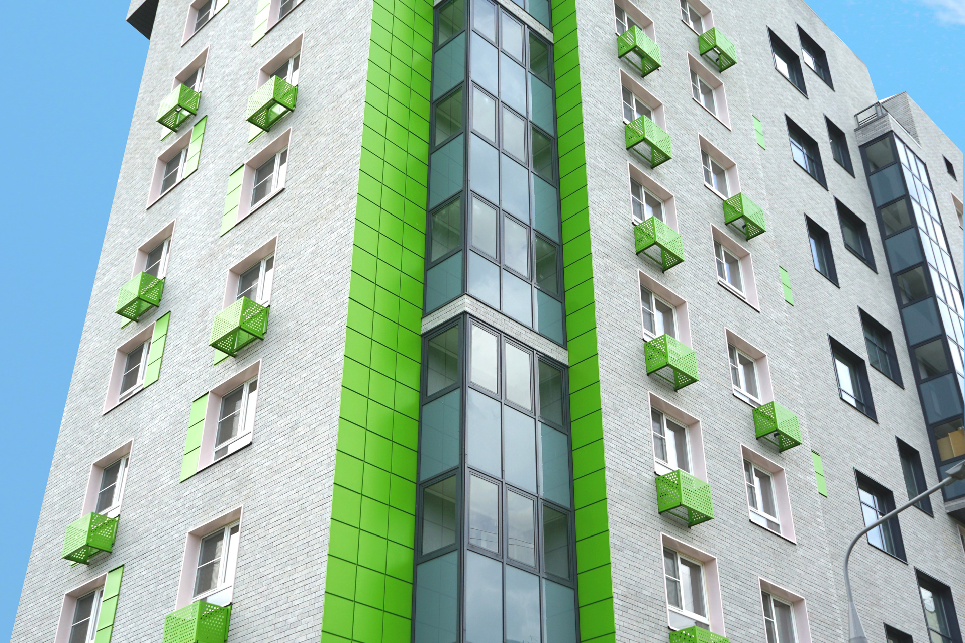 Облицовочный материал: металлокассеты, бетонная плитка White Hills