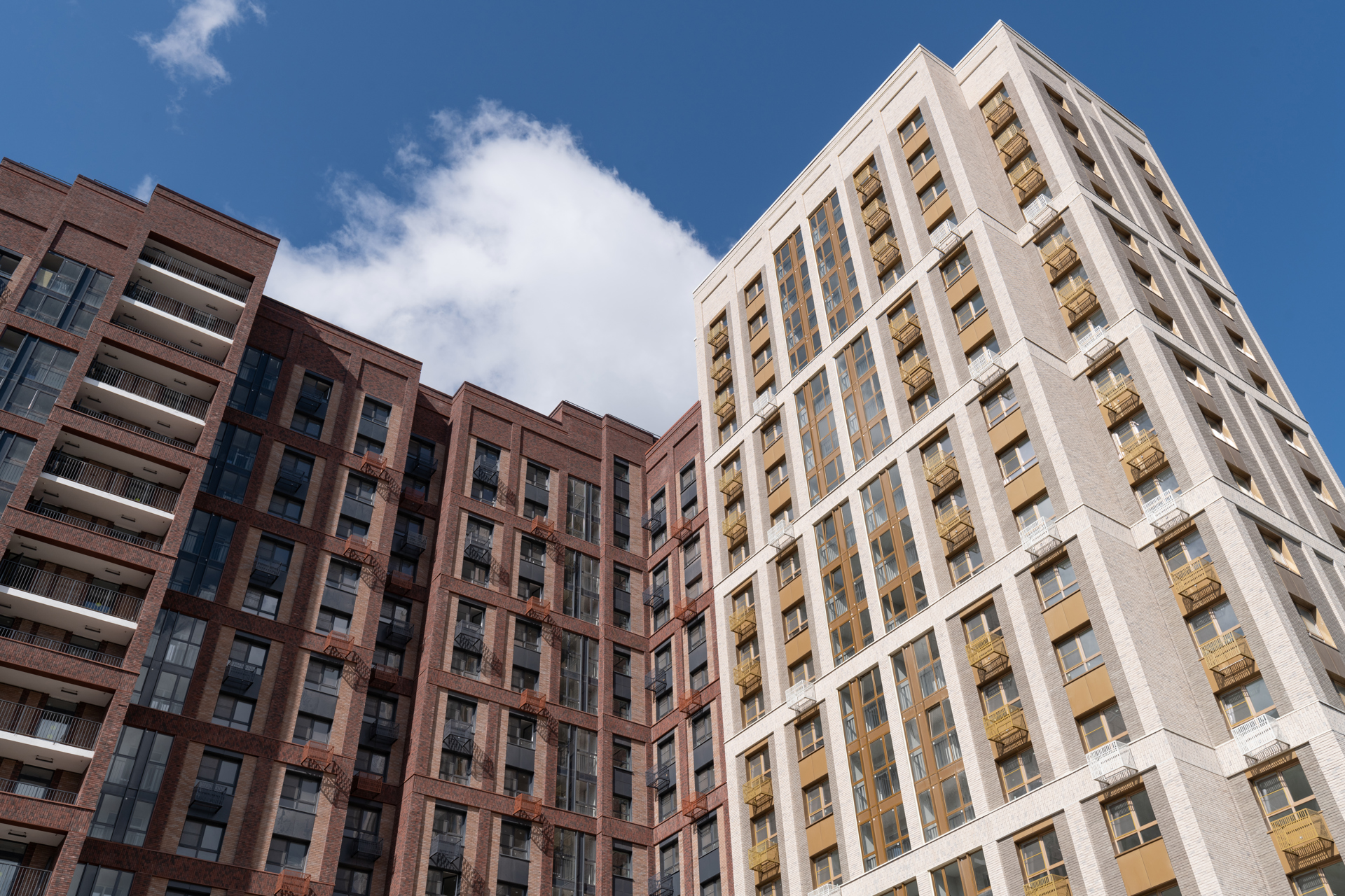 Облицовочный материал: кассеты из алюмокомпозита, бетонная плитка White Hills
