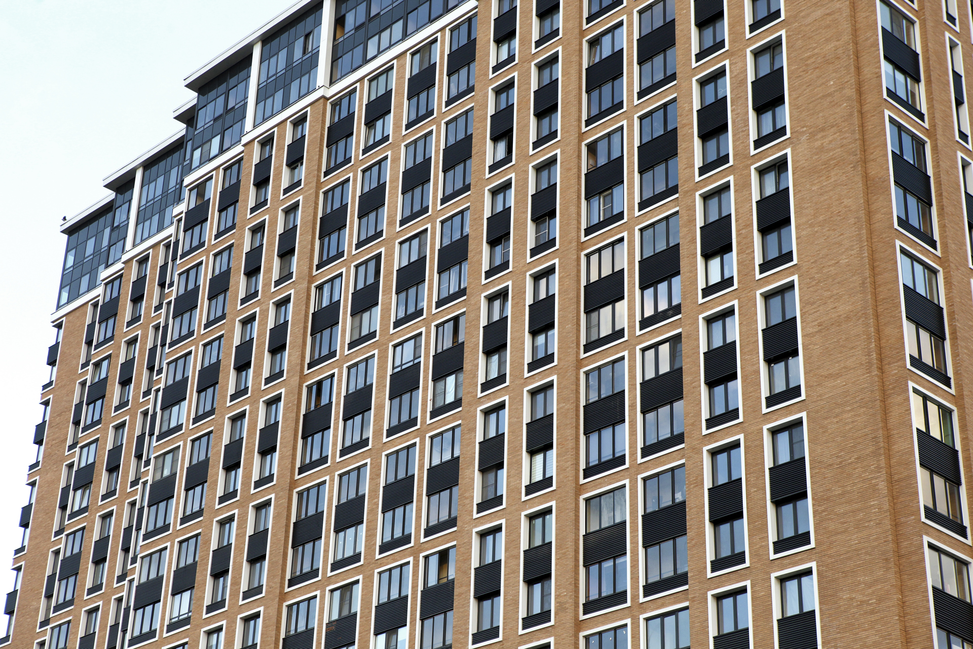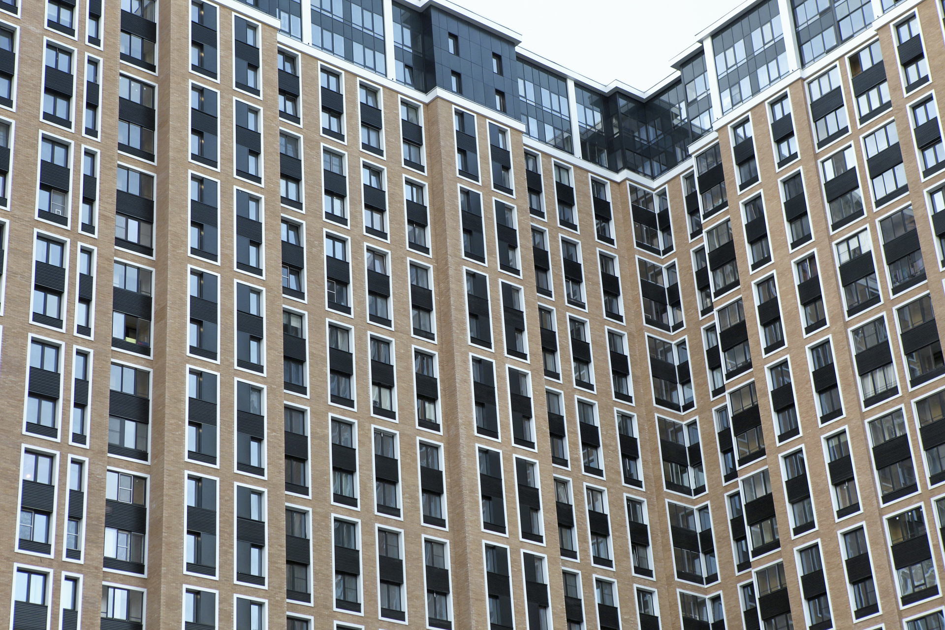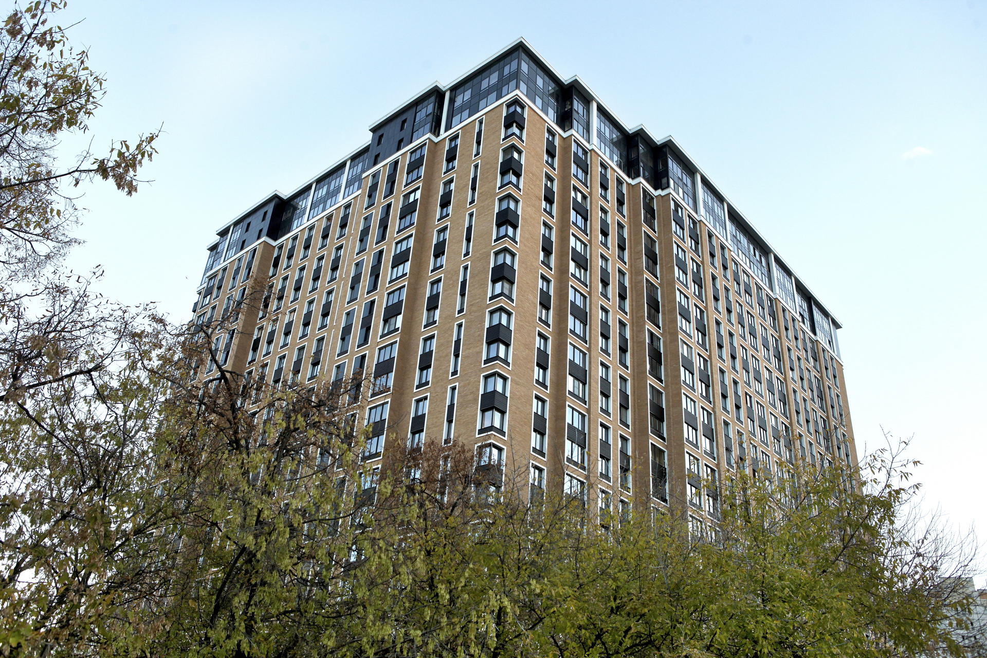 Облицовочный материал: стальные ламели, кассеты из алюмокомпозита, бетонная плитка White Hills