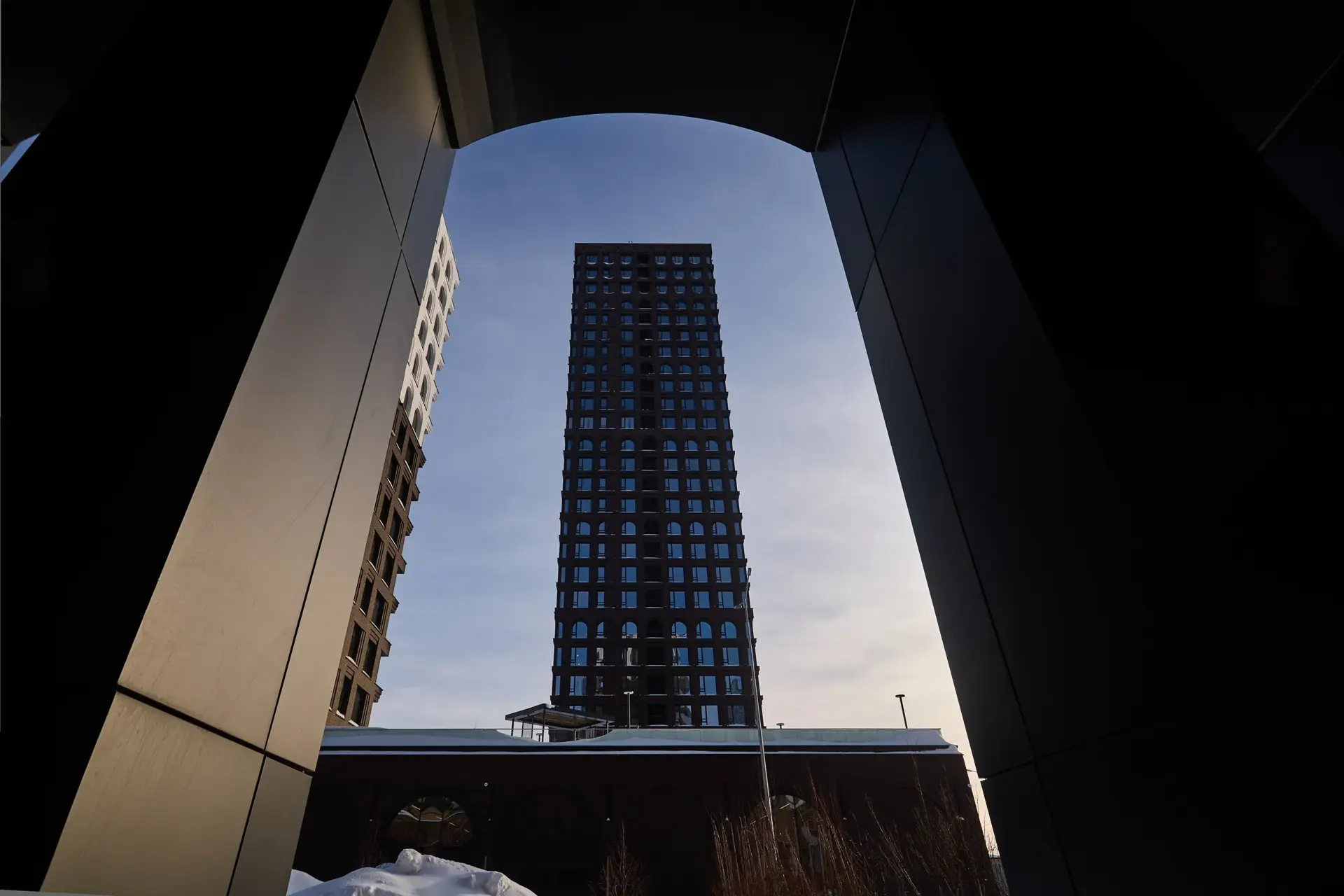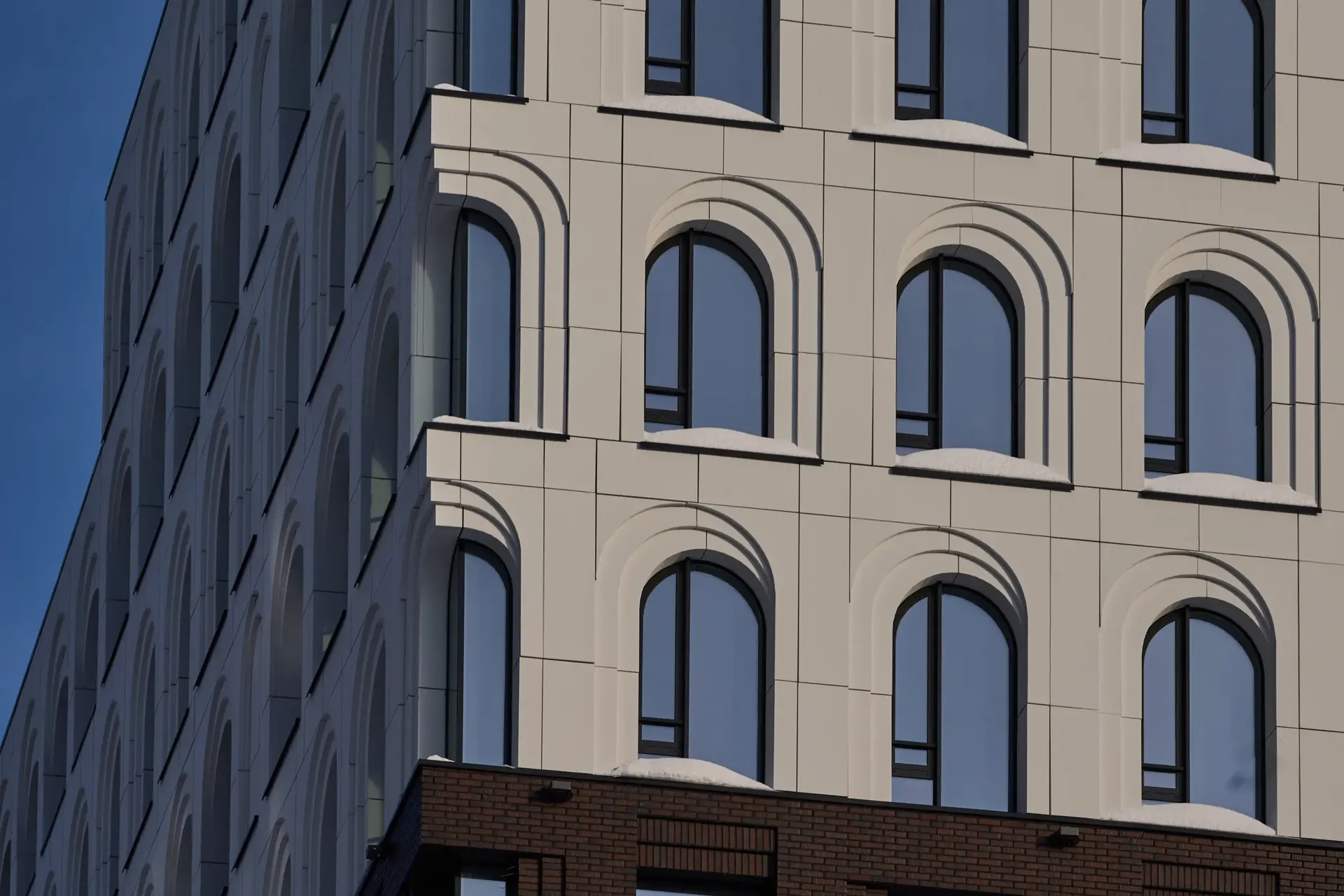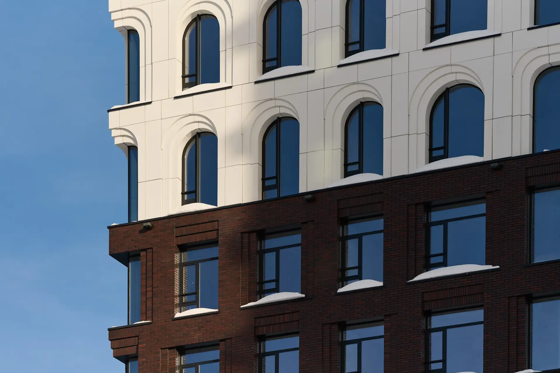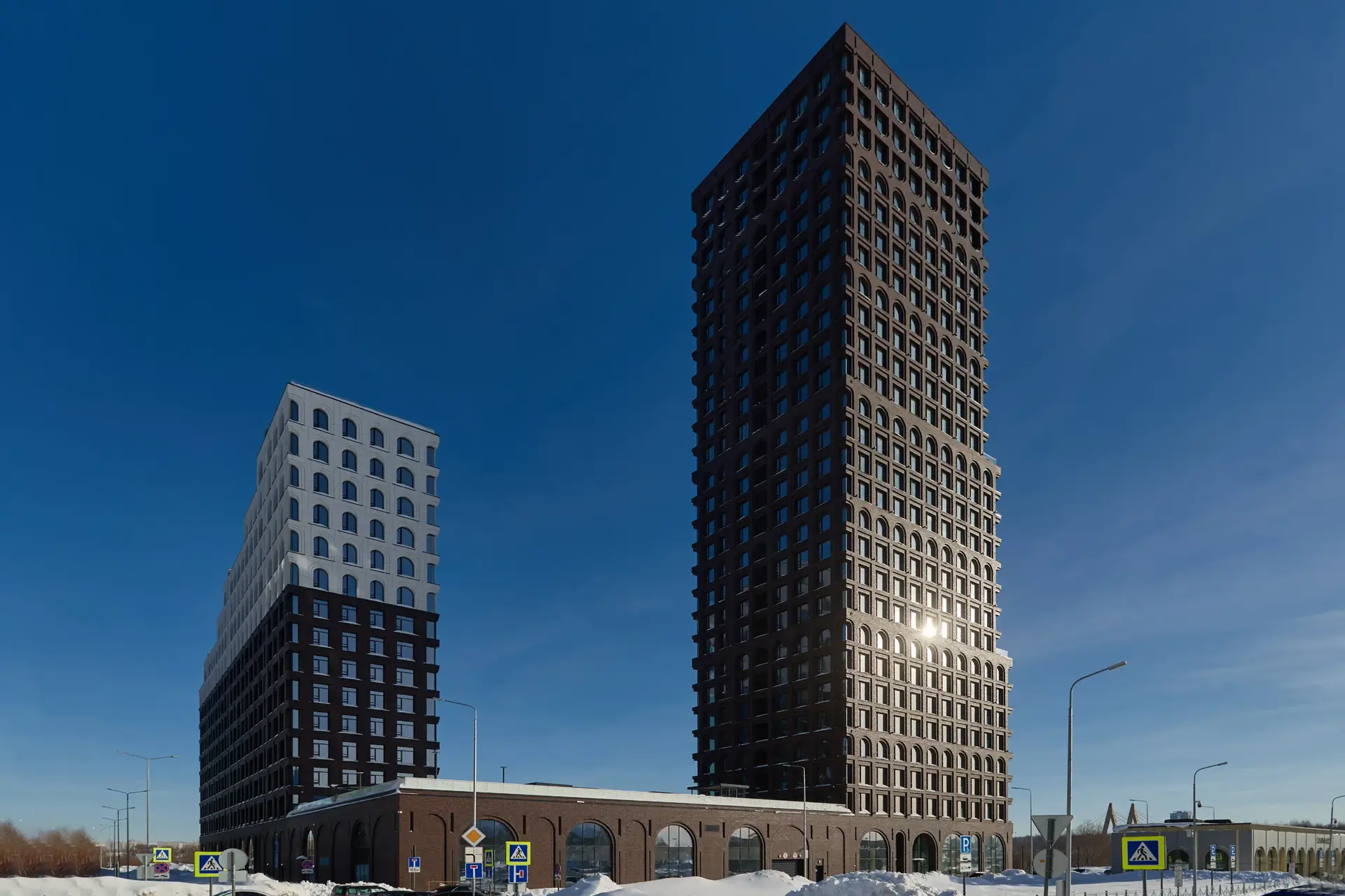 Облицовочный материал: кассеты из алюмокомпозита, кирпич RECKE-РОНСОН