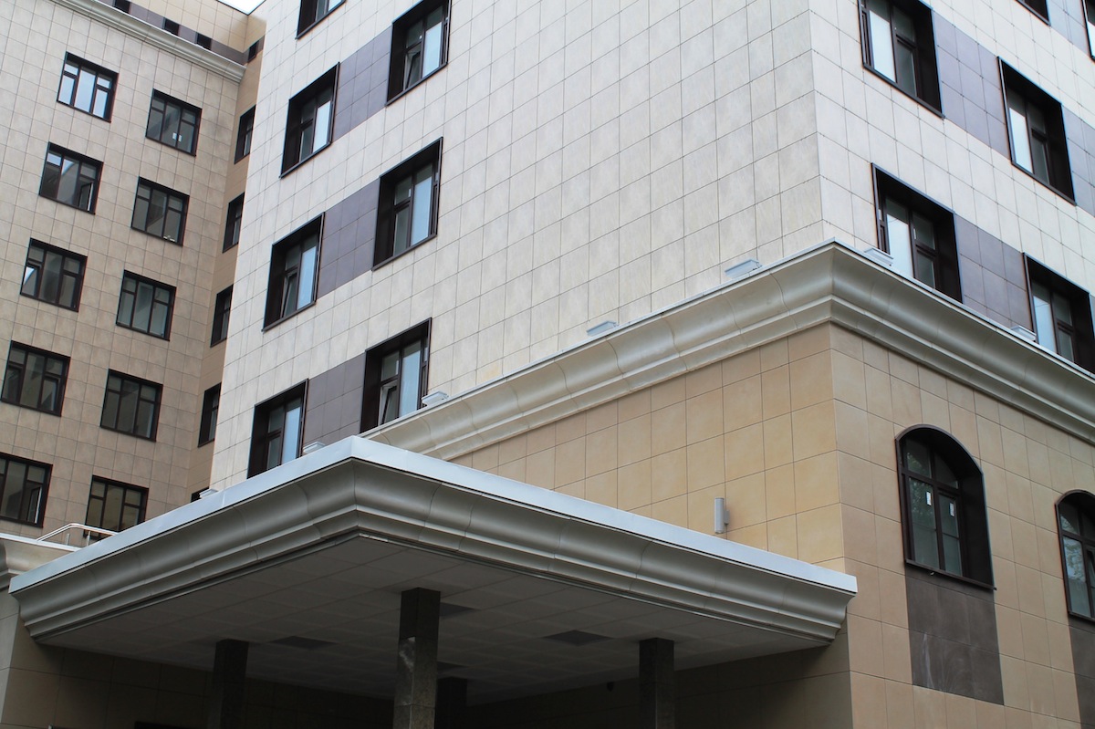 Облицовочный материал: керамогранит (видимое и скрытое крепление), натуральный камень, фасадный декор, зенитарные фонари