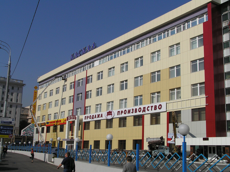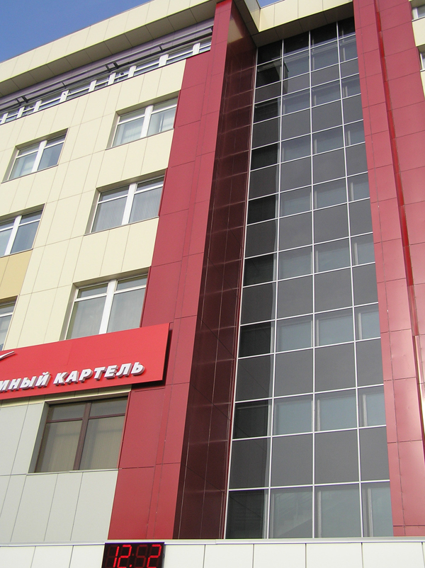 Облицовочный материал: алюмокомпозит, керамогранит (видимое крепление)