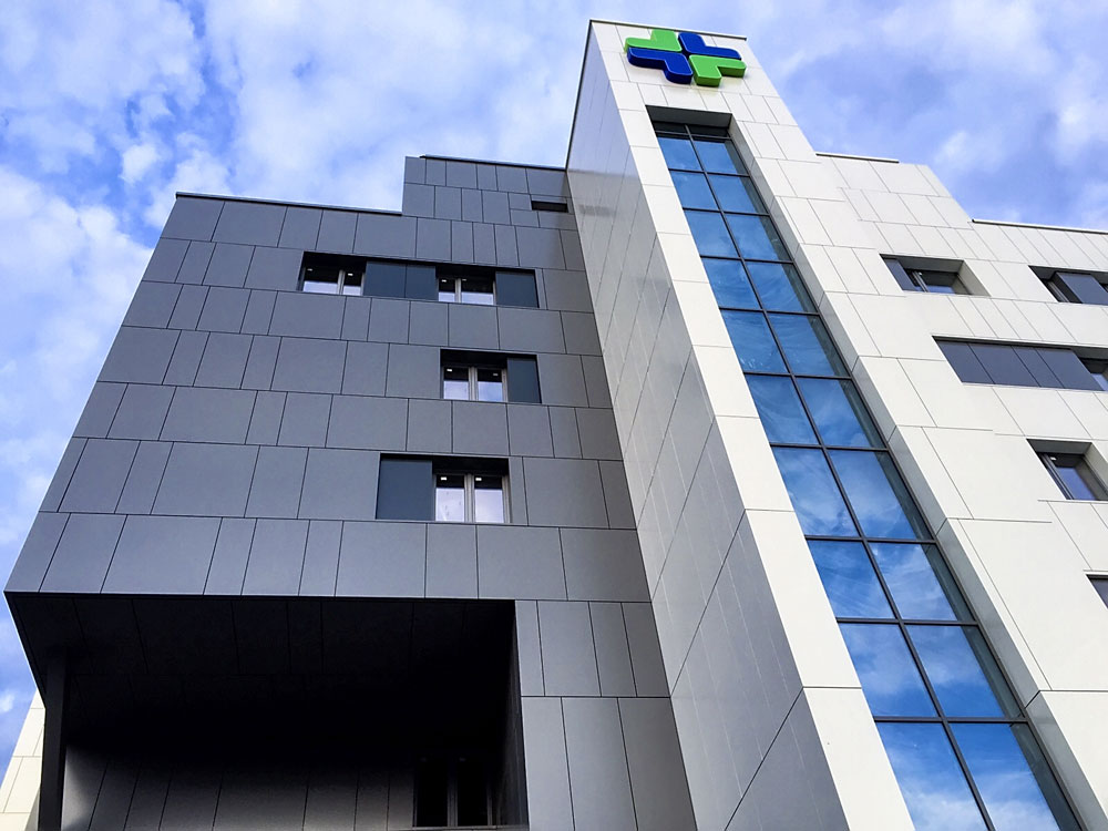 Облицовочный материал: кассеты из алюмокомпозита, солнцезащитные ламели из композитного материала, терракота