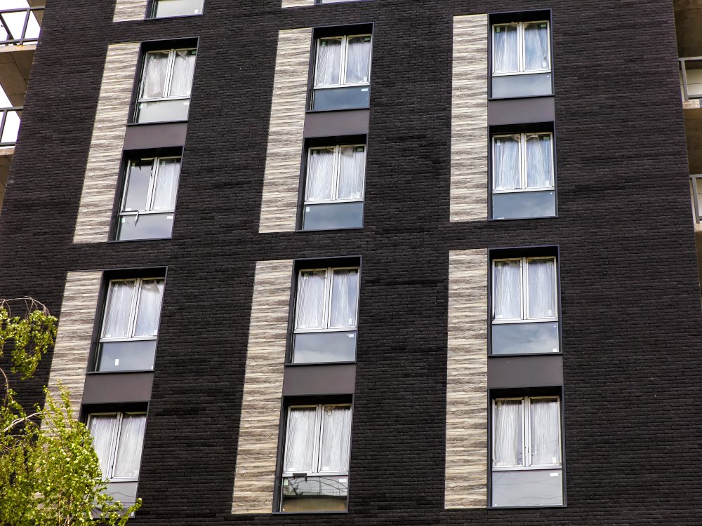 Облицовочный материал: фиброцементные плиты, керамогранит (видимое крепление), декоративный камень White Hills