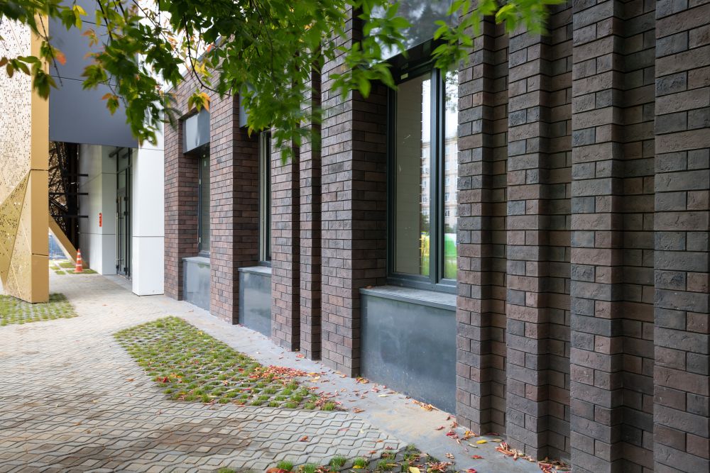 Облицовочный материал: кассеты из композита и стали, декоративный камень White Hills