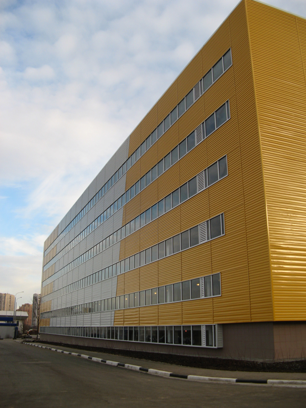 Облицовочный материал: металлосайдинг, ленточное остекление