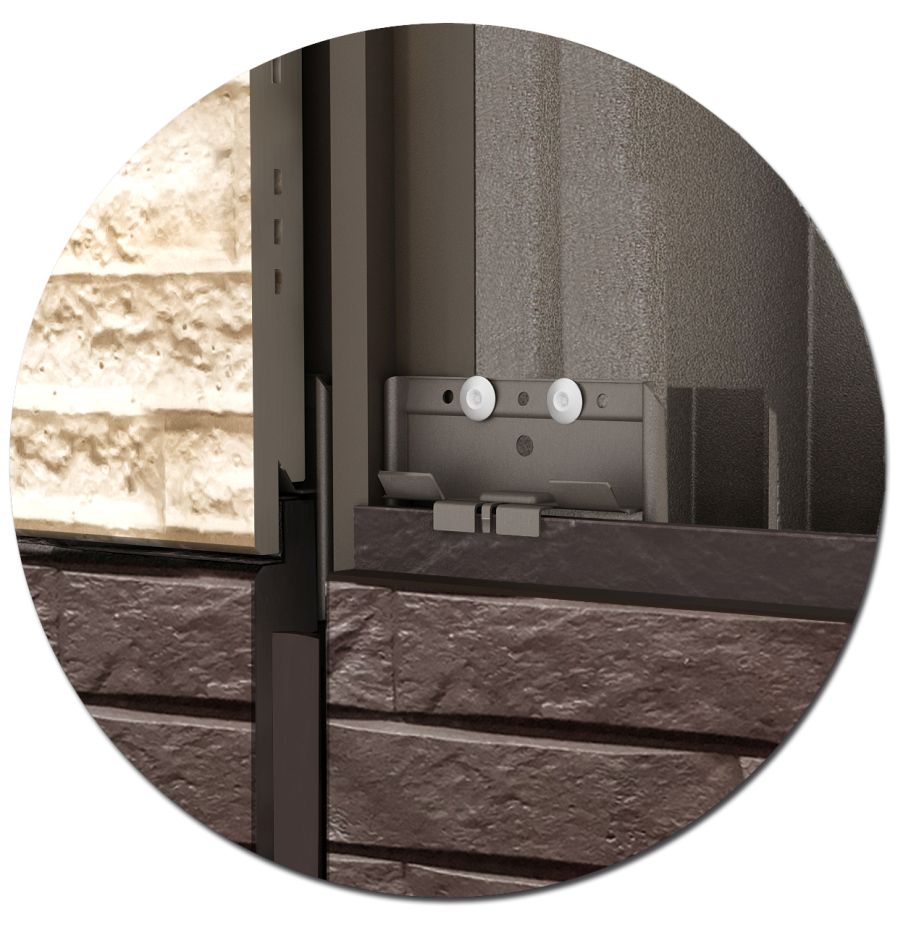 ·         Система РОНСОН позволяет выполнять экраны из плит KMEW СЕРАДИР-V без дополнительных деформационных стыков до 15 метров в высоту. Тем самым полностью реализуется уникальное преимущество панелей KMEW - эффект сплошного экрана без швов, имитация цельной стены. Отсутствует необходимость в терморазрывных швах каждые 3 метра.